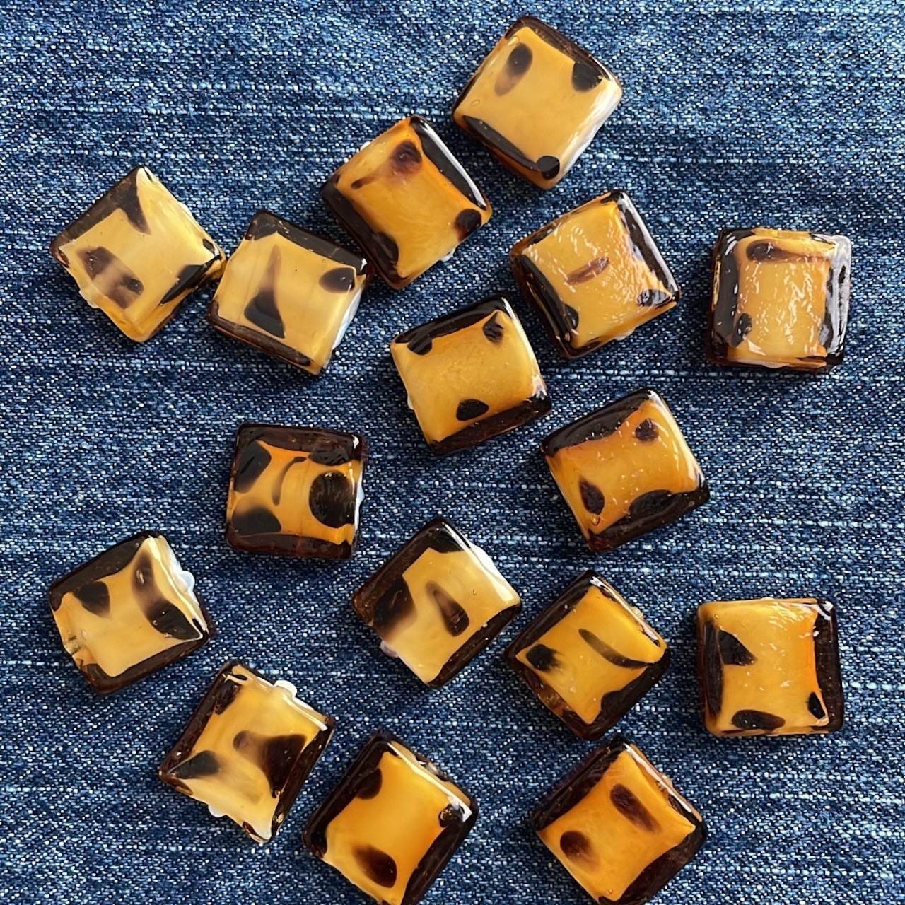 B級品 SALE レオパード柄 ガラススクエアビーズ 6個