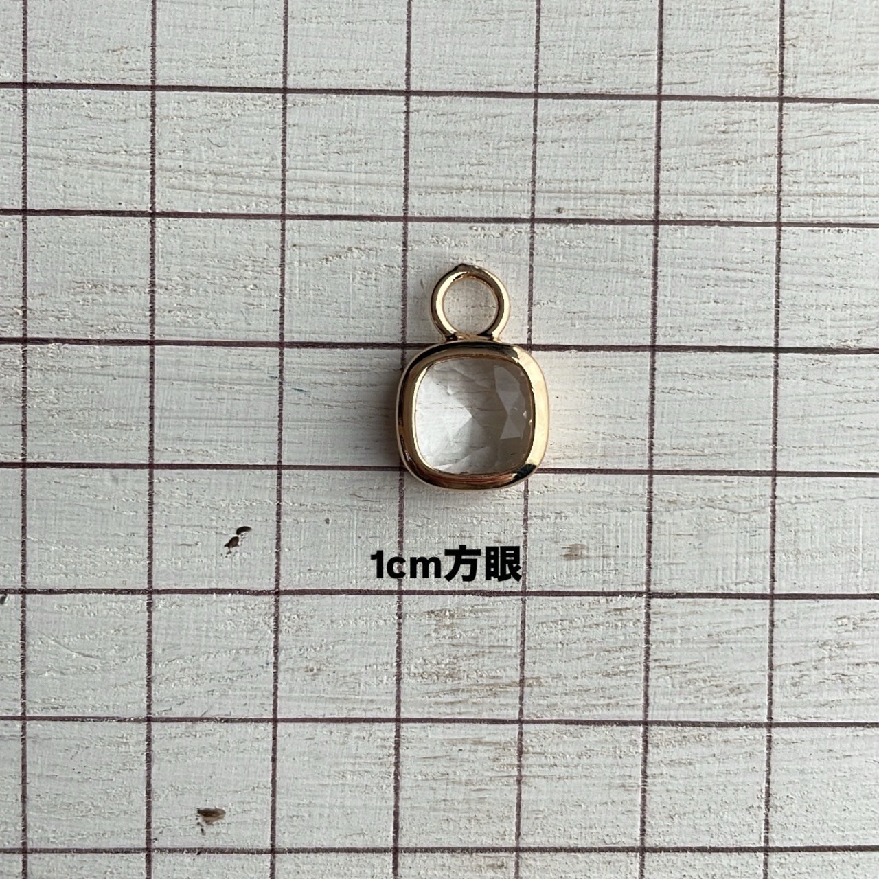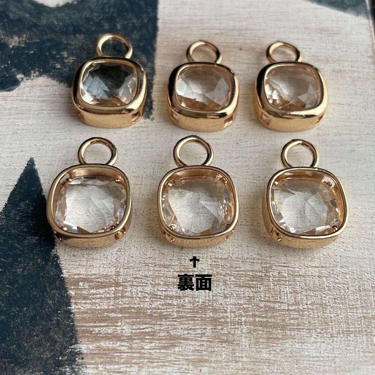 スクエアガラスゴールドフレームチャーム(クリア)4個