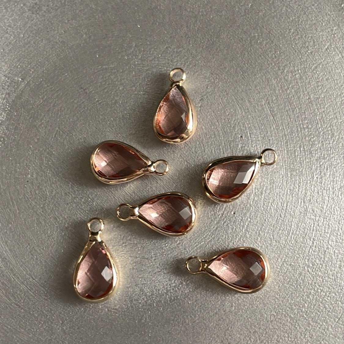 クリスタルガラスのドロップチャーム(ピンク)4個