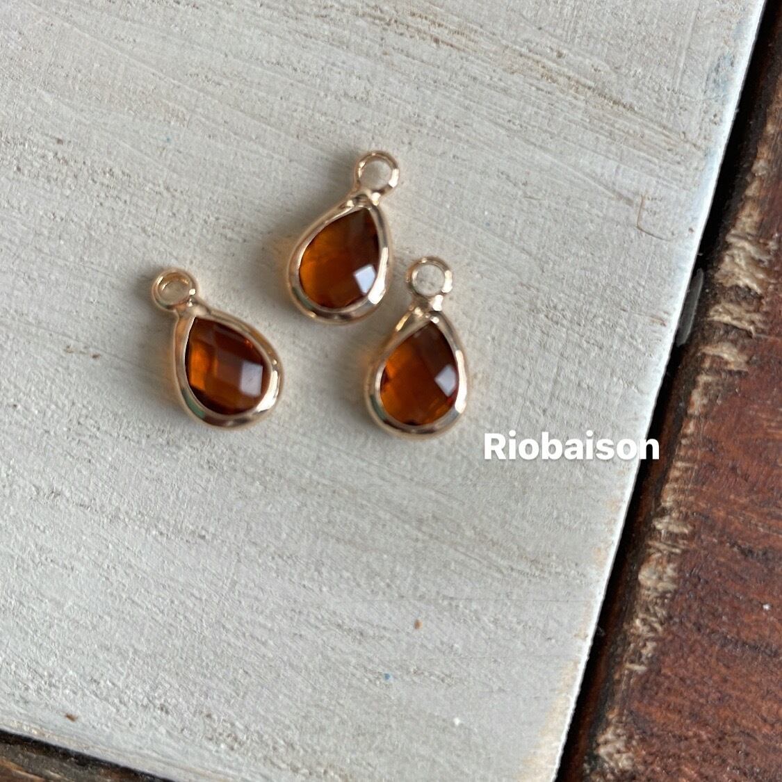 クリスタルガラスの小さなチャーム(ブラウン)4個