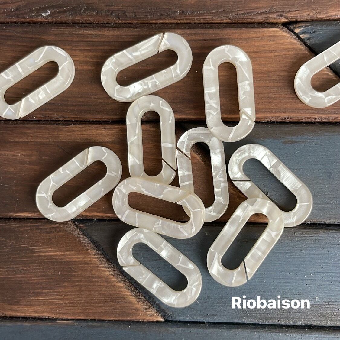 オーバルの一部に刻みがあり、繋ぎ合わせるとチェーン状になるシェル風パーツです。
