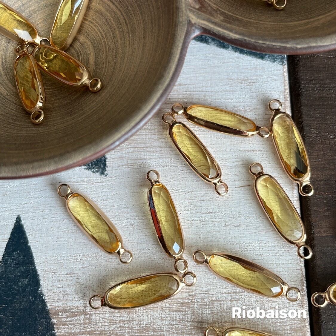 ガラスオーバル形チャーム(イエロー)両側カン付き 3個