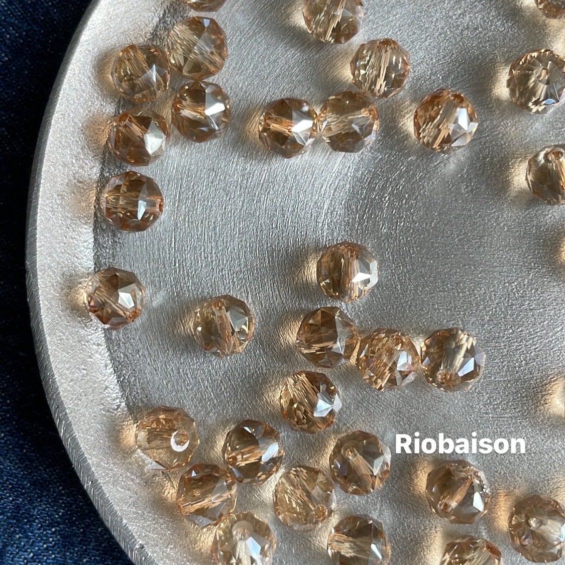 オーロラビーズは、8 mmのフラワーボールタイプで、多角カットが施されキラキラ輝きます。 シャンパンベージュの色合いが、大人っぽく上品❤︎