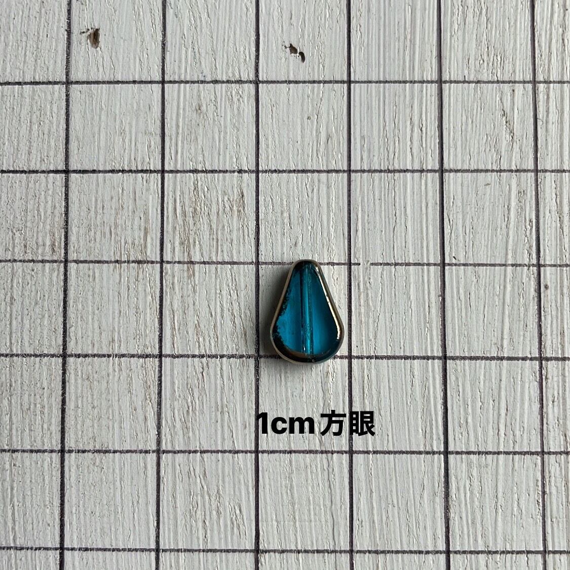 ドロップ形ガラスゴールドフレームビーズ(ブルー) 10個