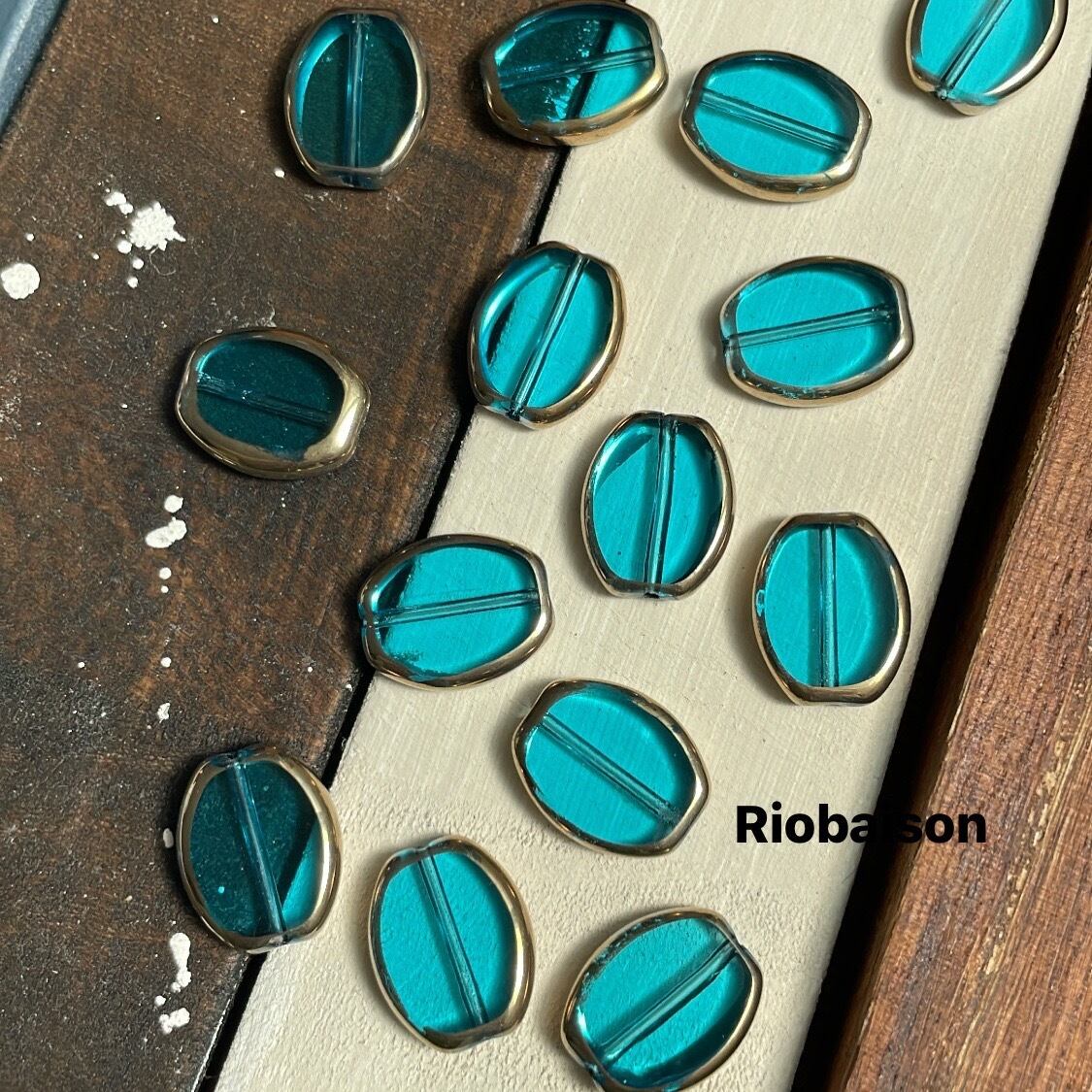 オーバルガラスゴールドフレームビーズ(クリアブルー) 8個