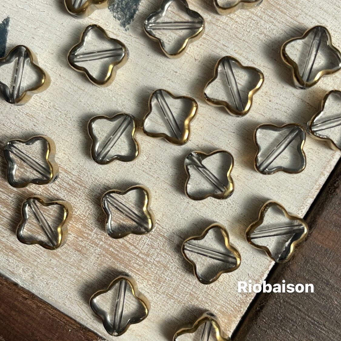 クローバーガラスゴールドフレームビーズ(クリア) 12個