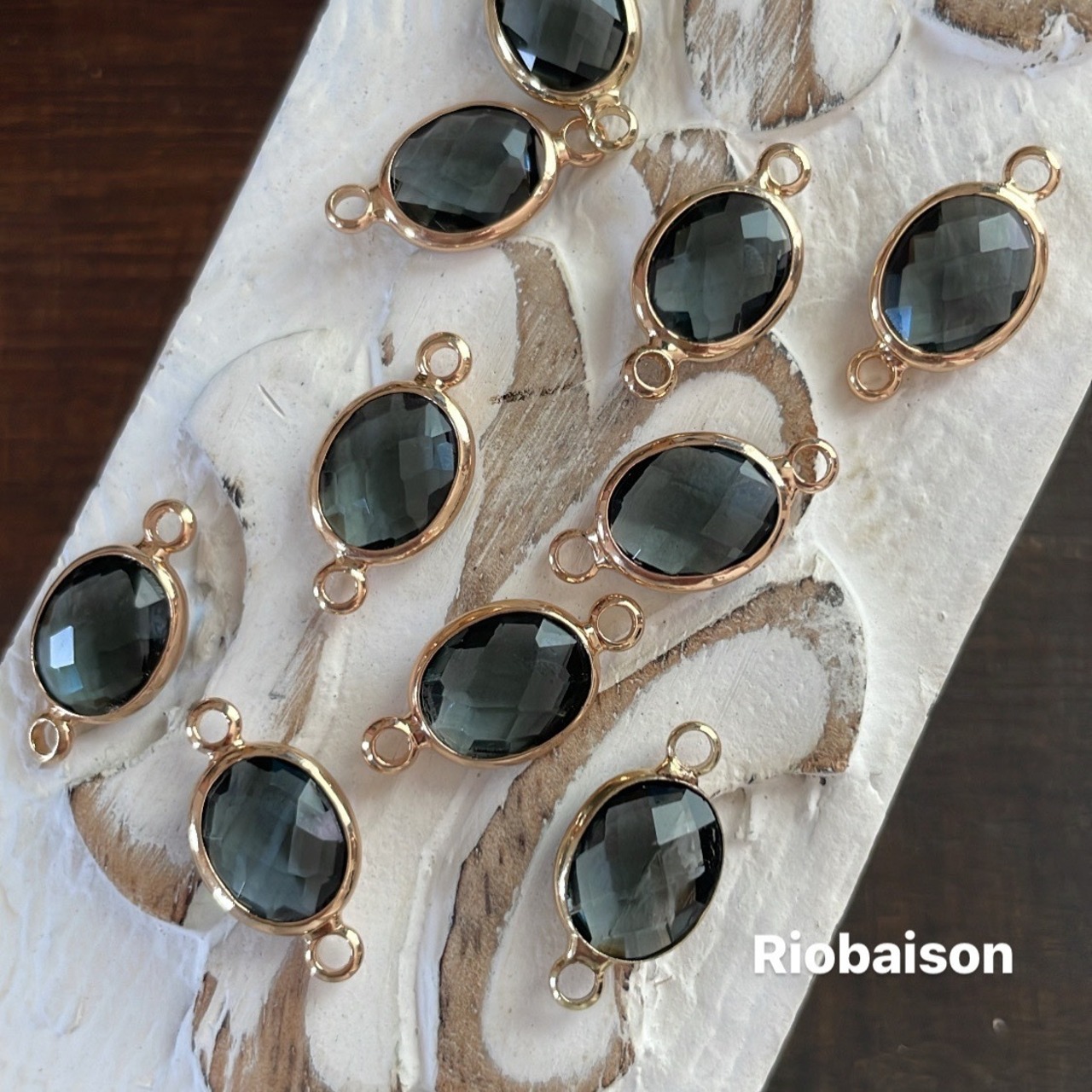 オーバル形の多面カットにゴールドのフレームが映える両カン付きパーツです。