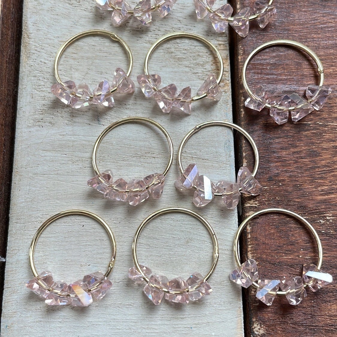 ビーズはカットされた面が大きめで動くので、光を受けると綺麗に輝きます。