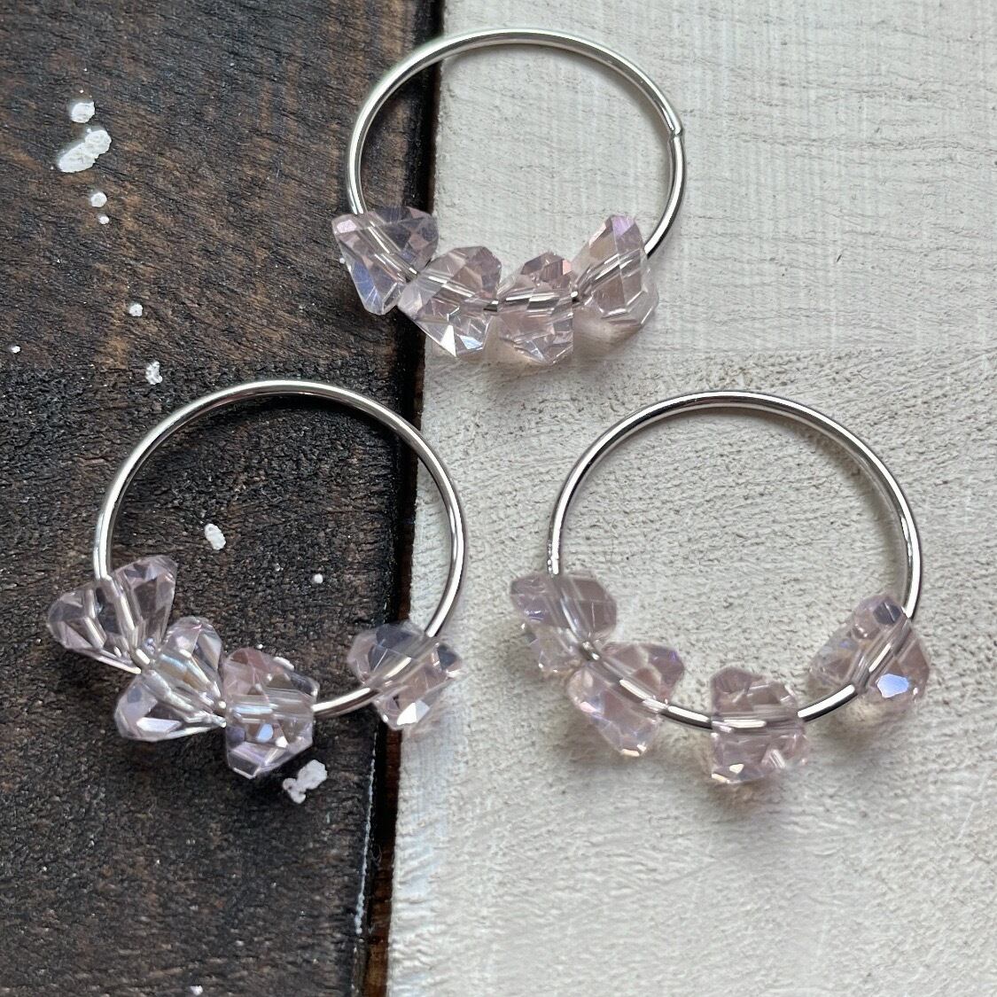 ビーズはカットされた面が大きめで動くので、光を受けると綺麗に輝きます。