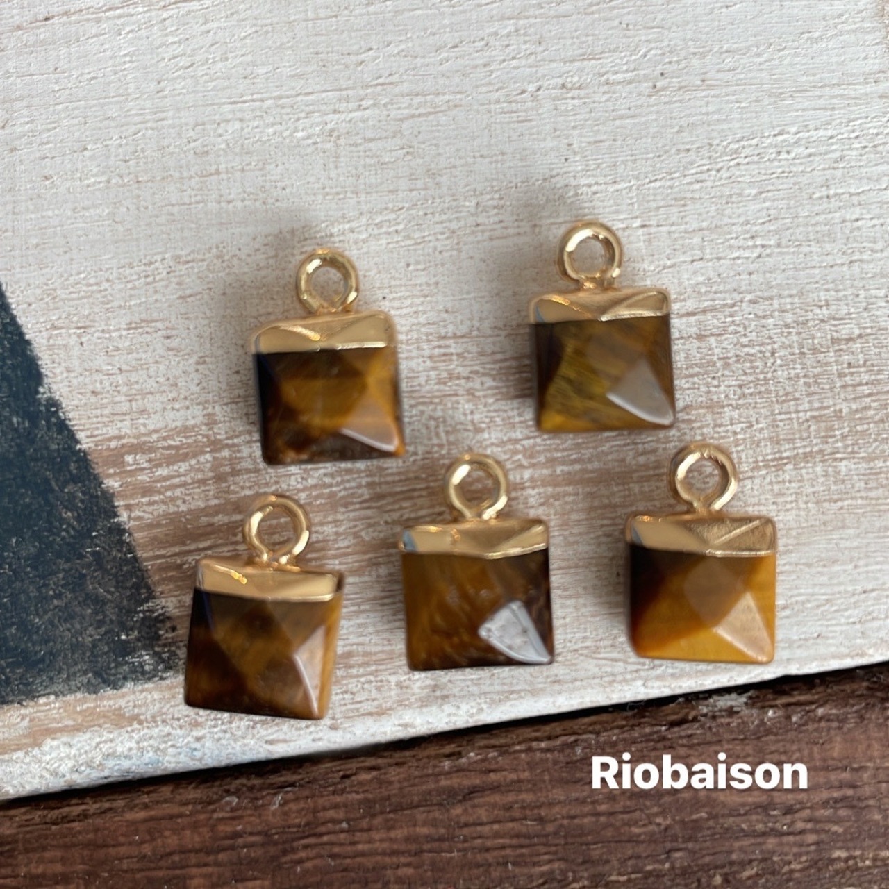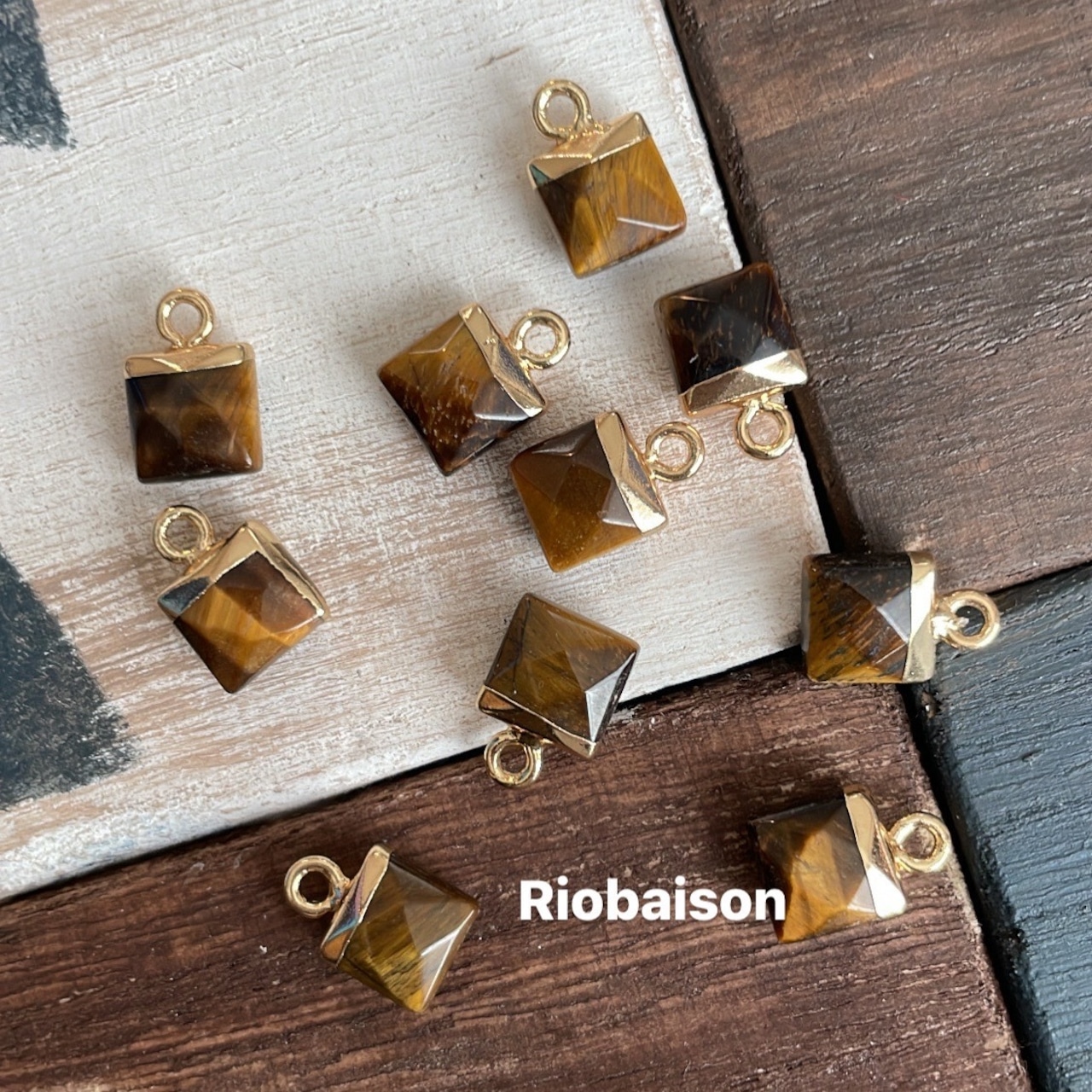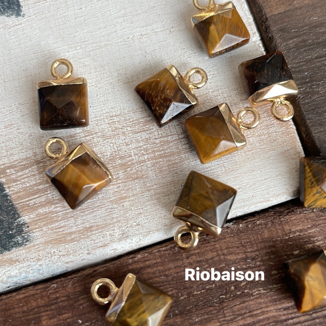天然石染スクエア形チャーム(タイガーアイ)2個