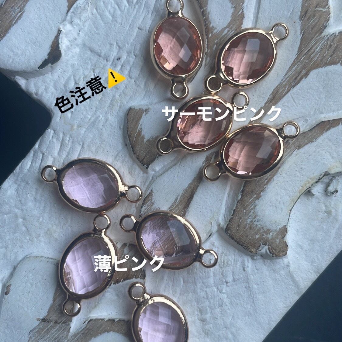 クリスタルオーバルゴールドフレームチャーム 両カン付き(サーモンピンク)4個