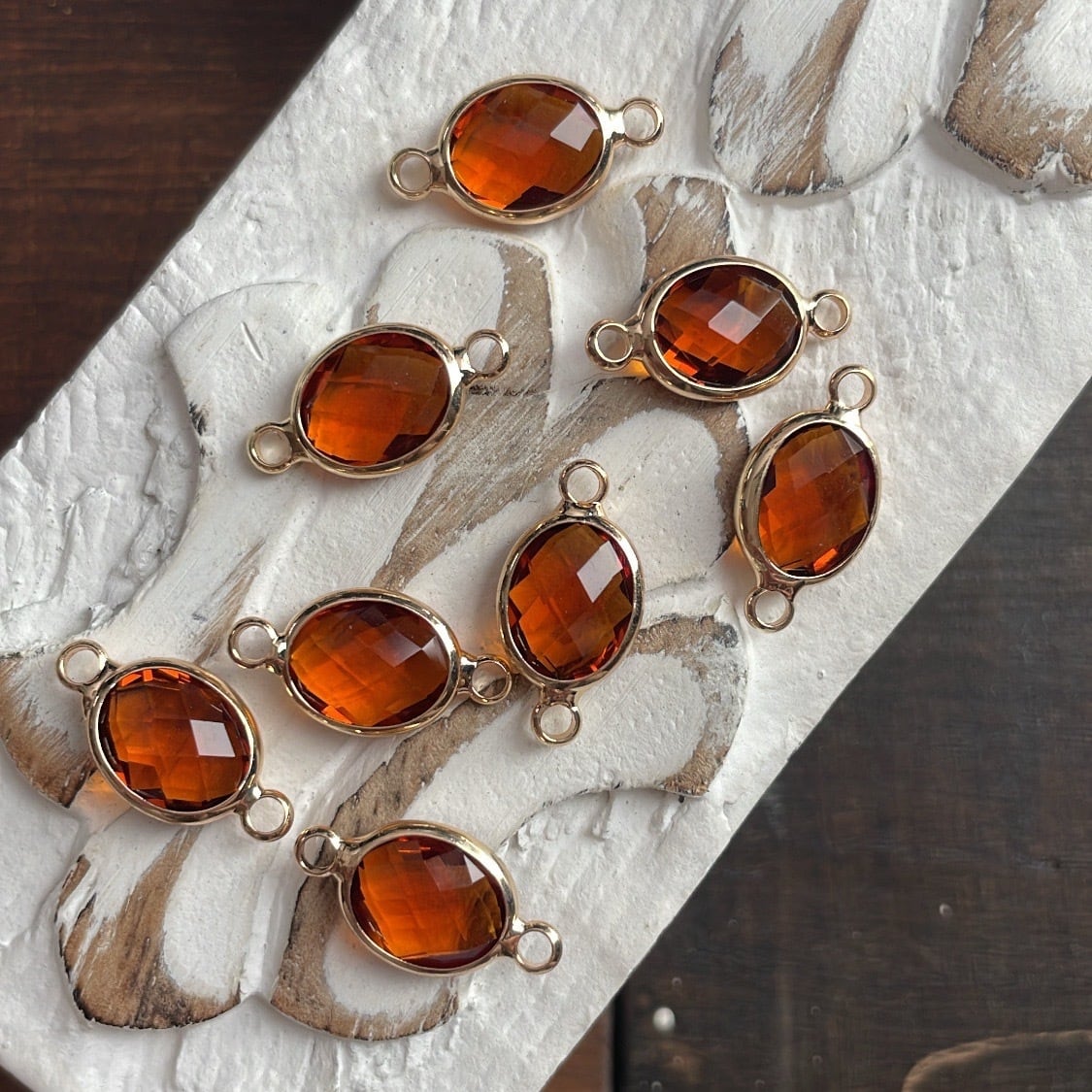 オーバル形の多面カットにゴールドのフレームが映える両カン付きパーツです。